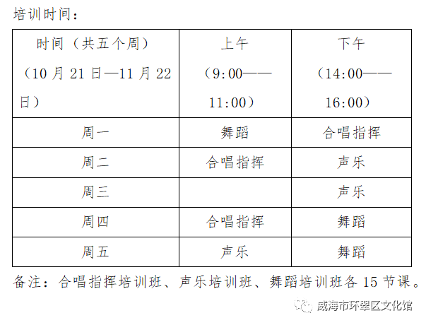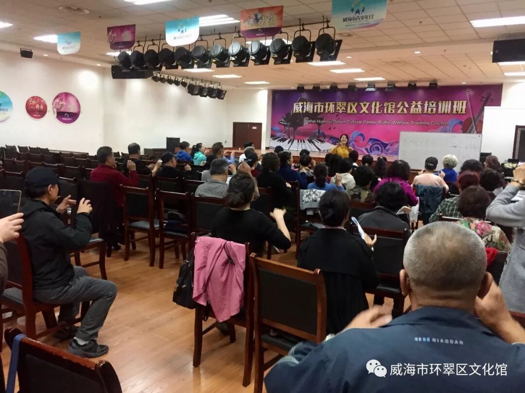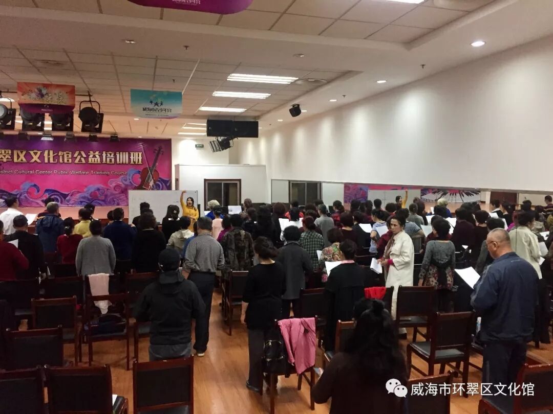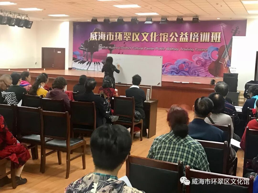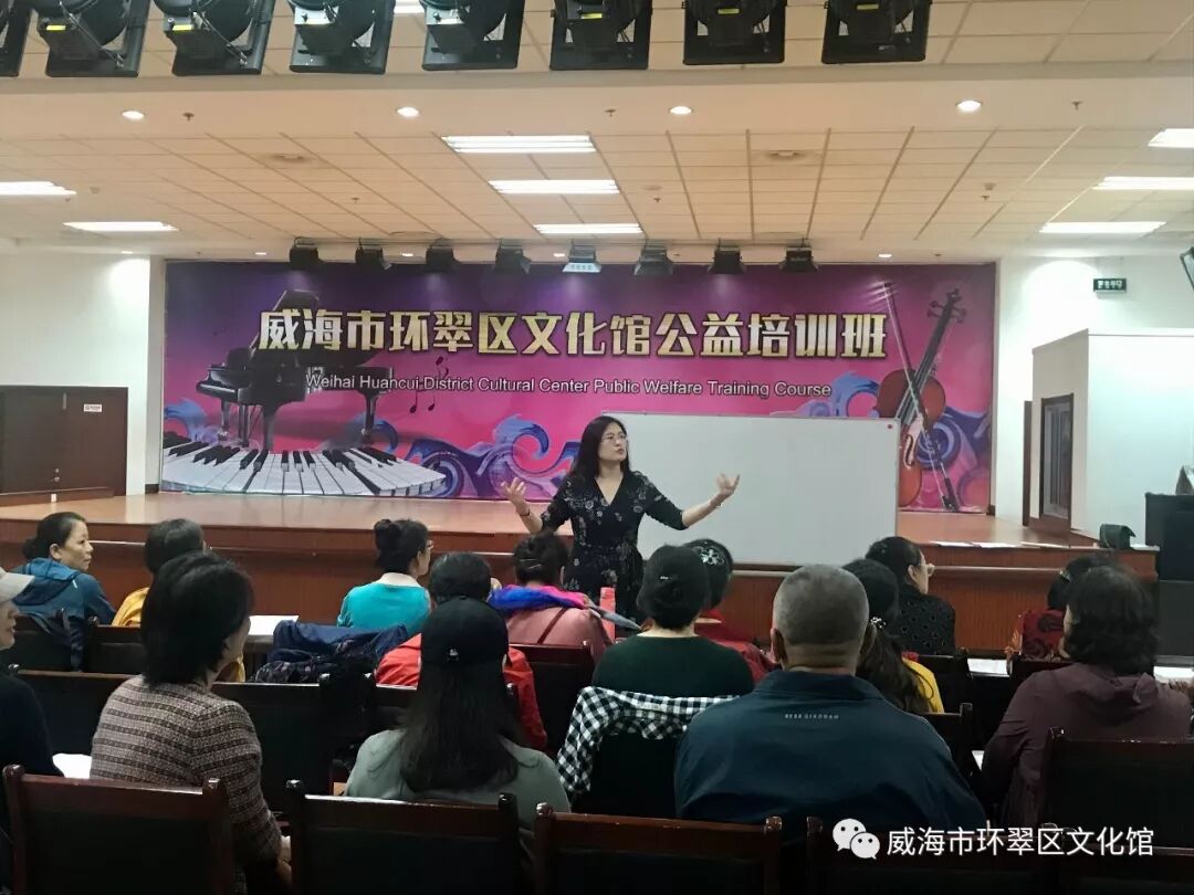 为认真履行环翠区文化馆作为公益一类事业单位的公共文化服务职能,不断提升免费公益文艺培训工作和文化惠民服务水平,丰富广大人民群众的文化生活,进一步提升基层文艺骨干的能力及水平,经研究决定举办2019年环翠区文化馆公益培训班活动。 10月21日上午9点,2019威海市环翠区文化馆公益培训班在威海文化艺术中心一楼多功能厅正式开班。文化馆根据广大群众的需求,开设合唱指挥、声乐、舞蹈3个班次,旨在有针对性地开展公益培训,打造文化活动品牌,培训为期1个月的时间。 为顺利开展公益培训班,环翠区文化馆专门邀请了专业的老师为大家授课。培训教学首先侧重于合唱指挥、声乐以及舞蹈的基础知识,帮助学员打好基础技巧,基础打好之后再进行下一步的深化学习。学员们学习热情高涨,克服各种困难,认真学好每一个指挥手势、唱好每一句歌词、完成每一个舞蹈动作,领会其中的要领。 “给培训班授课的也有我们文化馆的专业老师。”环翠区文化馆副馆长郑刚说,师资力量是培训班受追捧的重要因素,馆内的专业老师不仅自身专业度高,而且非常敬业。