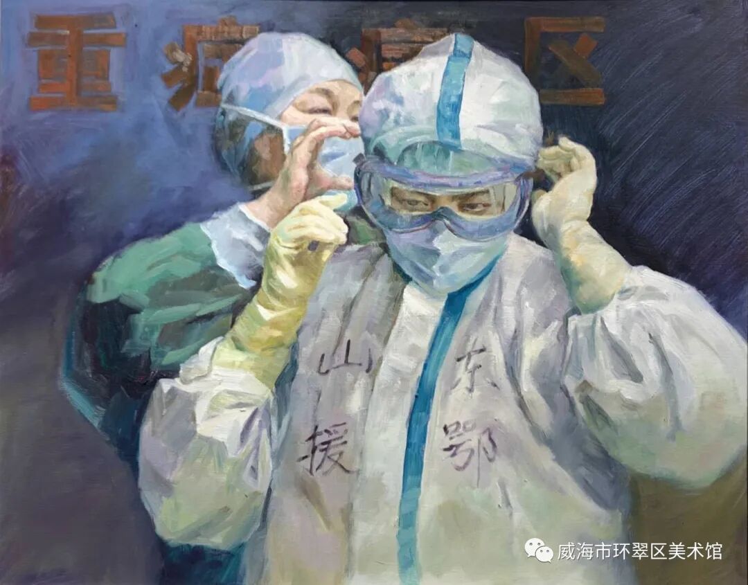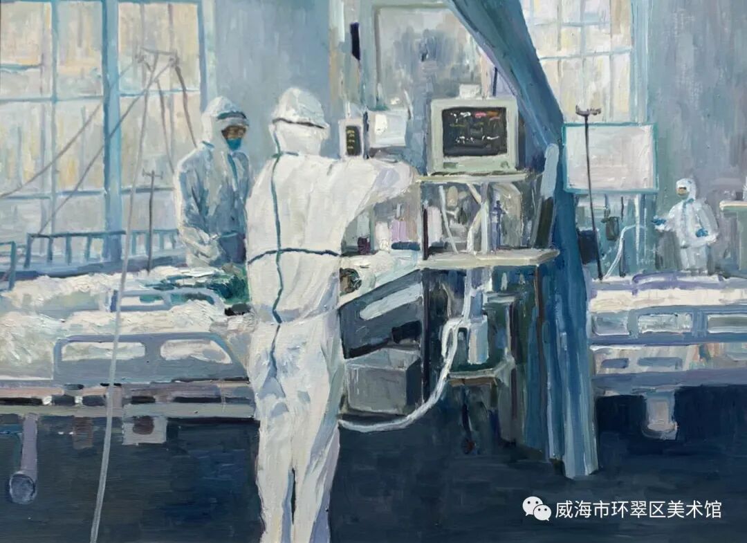 新冠肺炎疫情的爆发和蔓延,牵动了每一个人的心。为弘扬文艺作品的精神力量,展现这场疫情防控攻坚战中各行各业的精神风貌,更好地发挥文艺作品强信心、暖人心、聚民心、筑同心的重要作用,《弘扬民族精神 致敬时代英雄 ——2020抗击疫情主题美术作品展》将于6月27日在威海市环翠区美术馆隆重推出。 此次展览由中共威海市环翠区委宣传部、威海市环翠区文化和旅游局、威海市环翠区教育和体育局共同主办,由威海市环翠区美术馆、威海市环翠区文化馆、威海市环翠区图书馆承办,由威高兴源文化创意有限公司协办。 本主题展展出的百余幅美术作品,是从威海市美术工作者中征集而来。有油画作品、国画作品及其他形式的艺术作品。所有作品均为原创新作,其中80%以上是第一次向公众亮相。