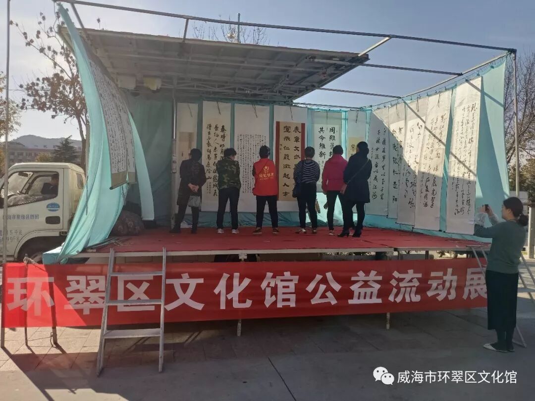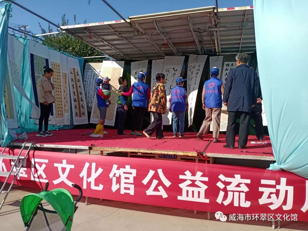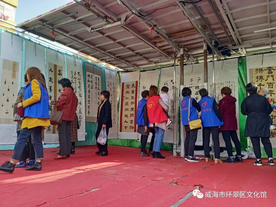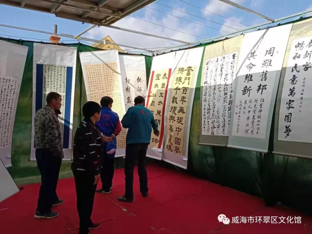 △ 温泉镇林家庄村书法展览 △ 温泉镇张家山村书法展览 △ 温泉镇亿和社区书法展览 △ 温泉镇滨城社区书法展览 △ 温泉镇明珠社区剪纸展览 △ 羊亭镇大北山村剪纸展览 △ 羊亭镇王家夼村剪纸展览 △ 羊亭镇南小城村剪纸展览 △ 羊亭镇北小城村油画展览 △ 嵩山街道向阳社区油画展览 △ 张村镇华锦社区摄影展览 △ 环翠楼街道大众悦舞园摄影展览 △ 鲸园街道大世界商业街摄影展览 △ 孙家疃街道安海社区摄影展览 △ 竹岛街道黄山社区非物质文化遗产展览 通过环翠区文化馆开展创建工作,到2020年,为全区公共文化设施建设、服务供给、服务与科技融合发展、社会化参与、体制机制建设、服务保障等各类指标全部达到或超过《第四批国家公共文化服务体系示范区创建标准》,解决公共文化服务发展不平衡不充分的问题尽一份力,形成具有环翠特色的制度成果,为威海市成功创建第四批国家公共文化服务体系示范区,打造环翠样板。