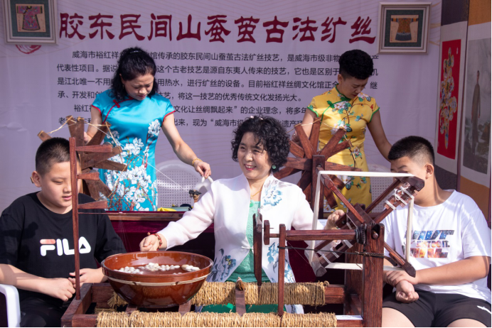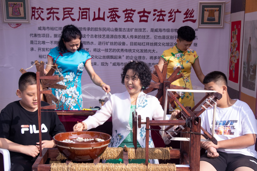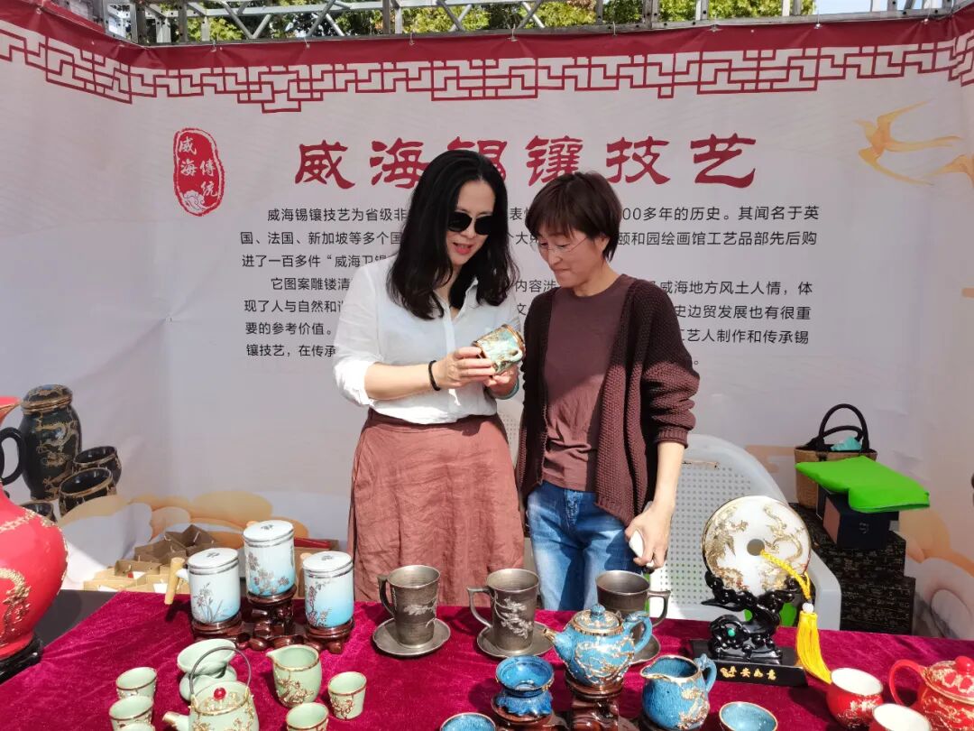 非物质文化遗产承载着 一个民族和地区的古老且活态的文化基因 它从来不是城市的附庸,更非累赘 而是与生于斯长于斯的人们依然有着 割舍不断的情感联系 技艺传承的审美寄托 是城市的无形“招牌” 正值十一国庆与中秋佳节“双节”共庆之际 环翠区文化和旅游局通过传统歌舞表演 艺术精品展览、现场互动体验等多种形式 让传统文化走进群众中间来 拉近群众与非物质文化遗产的距离 为“双节”献上了一场文化盛宴 非遗在身边 活动现场为观众带来了歌曲、舞蹈 旗袍秀、京胡、胶东大鼓、武术等表演 其间穿插十余个 非物质文化遗产项目的现场教学体验 现场观众积极互动 气氛热烈,掌声不断 场地周围还设置了十余个展位 集中展示了船模、锡镶、刻瓷 字画装裱、胶东花饽饽、古家具修复等 非物质文化遗产代表项目 并让观众免费体验传统文化的魅力 尹派宫式八卦拳的传承人在教一名小朋友八卦刀的基本动作 在威海市裕红祥丝绸文化馆展区 观众们对胶东民间山蚕茧古法纩丝技艺 产生了浓厚的兴趣 围观了不少人 大家饶有兴致地观看了传承人的现场演示 在“瑞连祥”传统服饰展区 一大批爱美的女士 被漂亮的传统服饰所吸引 纷纷驻足围观、拍照留念 弘扬传统文化、传承文化精神 “非物质文化遗产是我们民族文化的积淀,里面有许多值得我们学习的技艺 和内在精神,我们想通过这次活动进一步扩大非遗的知名度和影响力,号召群众积极地保护和传承优秀的传统文化让非遗项目能够薪火相传、焕发新的活力。”环翠区文化和旅游局局长段会林介绍说。 据了解 此次活动由环翠区文化和旅游局主办 环翠区文化产业协会、环翠区文化馆承办 是威海市环翠区 “弘扬传统文化、传承文化精神” 又一项重要内容 2020.10.01 <<< 传承和保护 活动全方面展示了 环翠区非物质文化遗产资源优势 展现了环翠区传承和 保护非物质文化遗产项目成果 为打造环翠非遗品牌 助推非遗产业健康发展 助力“精致城市·幸福威海”首善之区建设 贡献了力量