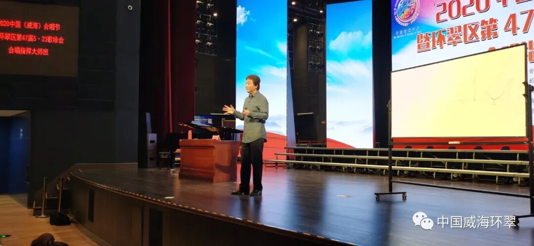 今天上午,2020中国(威海)合唱节暨环翠区第47届5·23歌咏会合唱指挥大师班在市群众艺术馆海洋剧场开班,活动邀请著名音乐指挥家孙相根现场授课,为全市合唱指挥人才和合唱爱好者们答疑解惑、传经送宝。 在授课现场,孙相根围绕合唱指挥中常用到的三线、拍点、分拍等内容,用通俗易懂的形式进行了讲解示范。 大师的讲解让合唱爱好者们受益匪浅,威海教师合唱团的成员们听得格外认真,他们都是来自市区各中小学校的音乐教师,能在大师班上学到知识、有所收获,对今后的教学、参赛都有很好的帮助。 “对一线的中小学音乐教师来说,今天的授课结合了很多音乐作品,具体到每个拍子的分析,解决了我们合唱指挥过程中的一些疑惑与问题,让我们受益匪浅。”威海教师合唱团副团长、威海市高级实验中学音乐老师孙凤英说。