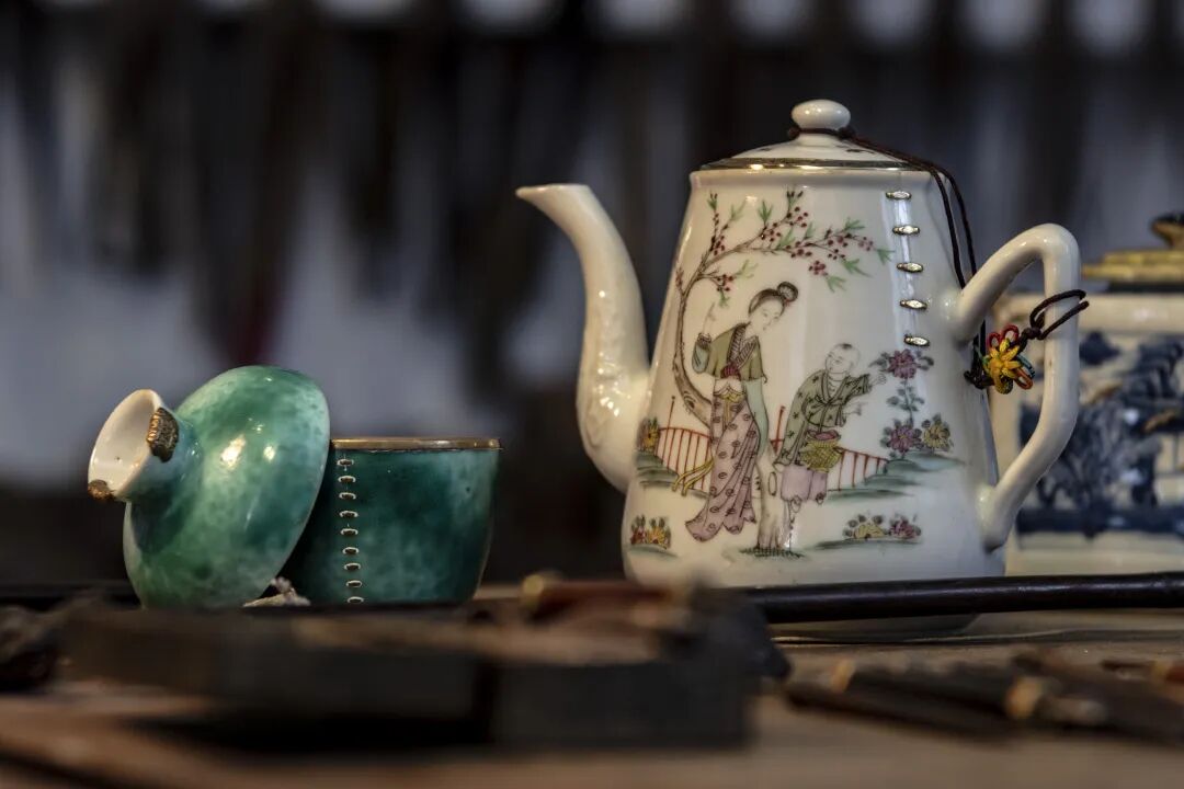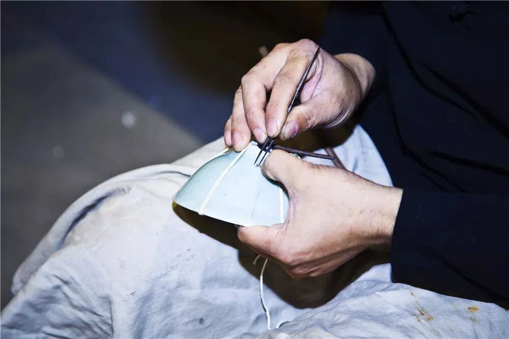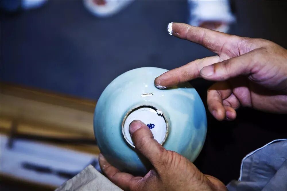 锔瓷,这门中国最古老的瓷器修复技艺应运而生,在锔瓷匠人手里碎裂的瓷器被赋予全新的生命,缝合出独特的美意。他们修补的不仅仅是破碎的器物更是人们的惜物之心。 锔补修复这一行当,随着中国瓷器业的兴旺发展延续。锔瓷里最重要的一件工具就是金刚钻。山东的金刚钻为皮钻,是由三条皮绳往返拉伸,旋转平稳。钻头是钻石或金刚石,锔钉大致相同,锔瓷的过程也大致相同。 随着社会的发展,人们的生产、生活方式的改变,瓷器坏掉了再买新的,没人再造访锔瓷这一行当。没了市场,锔瓷技艺难以传承。近几年,随着收藏市场的兴旺,锔瓷业再度兴起,重获新生。 在威海,锔瓷技艺得以传承主要是因为耿海胜。他的父亲耿德轩年轻时就从事锔瓷行业,是胶东地区远近闻名的老锔匠。耿海胜从小耳闻目染,通过自己的努力和钻研,从父亲手中接过了锔瓷这门手艺。在多年的摸索努力中,耿海胜成为新一代的锔匠传承者。 锔瓷过程 第一步 锔瓷找碴 找碴,对缝,对破损的瓷器恢复原状,准备修补 第二步 捧瓷 根据瓷器的纹饰结构以及样式张合位置和位点,以及锔钉数量和位置定位点记。 第三步 打孔 用金刚钻打孔。打孔是对锔瓷人的一大考验,有些瓷器厚度就几毫米,打孔时都是毫厘之差。打孔时,一要拿得稳对的准,不能打穿;二要对称,不能有一点偏差。 第四步 上钉 锔钉制作体现手艺人的水平,锔钉的韧性和制作锔钉的水平,也决定着锔补器皿的使用寿命。锔钉分为金钉、铜钉、花钉。锔钉的大小,得根据器物的大小以及破损程度来计算。 第五步 密缝 用鸡蛋清和瓷粉调和补漏,防止瓷器漏水。 裂纹、锔钉与锔好的瓷器、形制、纹饰融为一体,散发出一种古朴、大气、精雅、超凡脱俗的艺术大美。耿海胜化腐朽为神奇让残破陶瓷恢复了使用和观赏价值,更体现了前人尚俭的美德,他的锔技赢得了普遍赞誉。为了将传统锔瓷这一古老的传统技艺传承下去,耿海胜的父亲成立了德轩锔瓷文化发展公司,建立了锔瓷艺术展示馆“吉呈轩锔工坊”“吉呈轩公益文化空间”,面向社会免费开放。 “世间好物不坚牢,彩云易散琉璃脆”,瓷器亦如此,美好却易碎。但如今有了锔瓷,它让残缺的艺术品不仅恢复原貌,还比之前更加惊艳、更加具有艺术性。